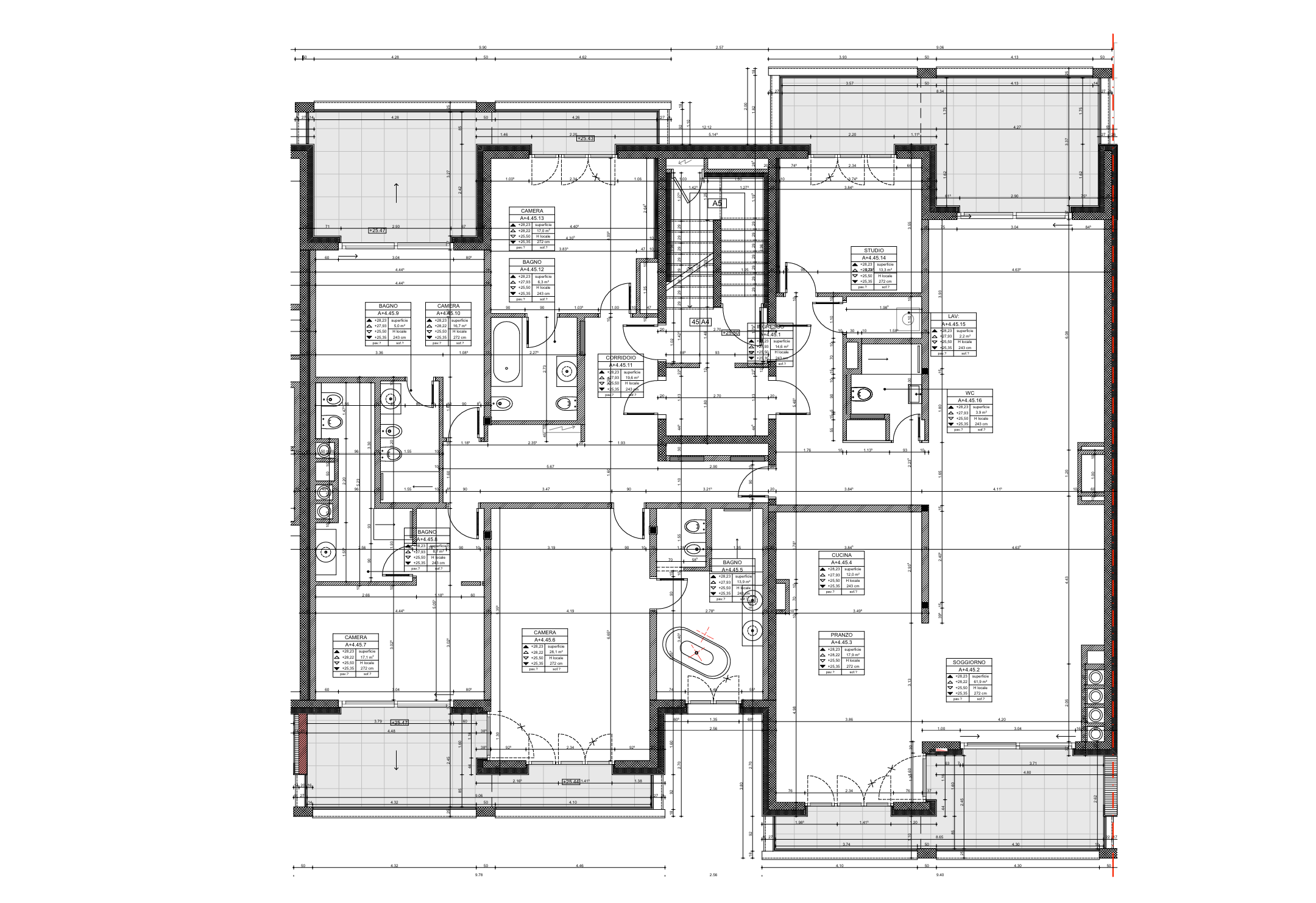 Proseguendo si trovano un'ulteriore camera matrimoniale con vista lago, armadiature su misura, bagno privato con doccia e accesso al terrazzo, oltre a una terza camera matrimoniale con bagno en suite dotato di vasca e una quarta camera matrimoniale, anch'essa con bagno privato con vasca.