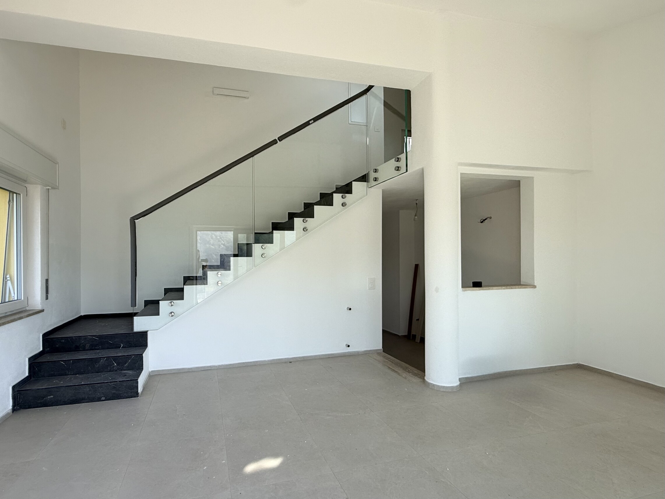 PIANO SOTTOSTANTE al quale si scende con moderna scala in muratura, composto dal soggiorno con ampie vetrate panoramiche, l'angolo cucina attrezzato, altre due camere da letto matrimoniali e il bagno con vasca/doccia e sanitari sospesi;