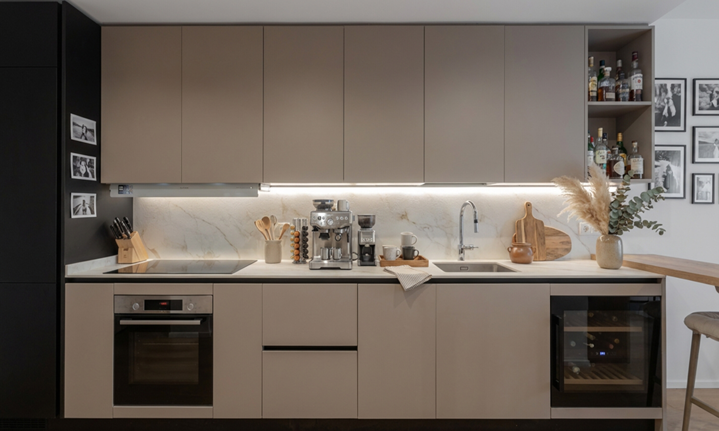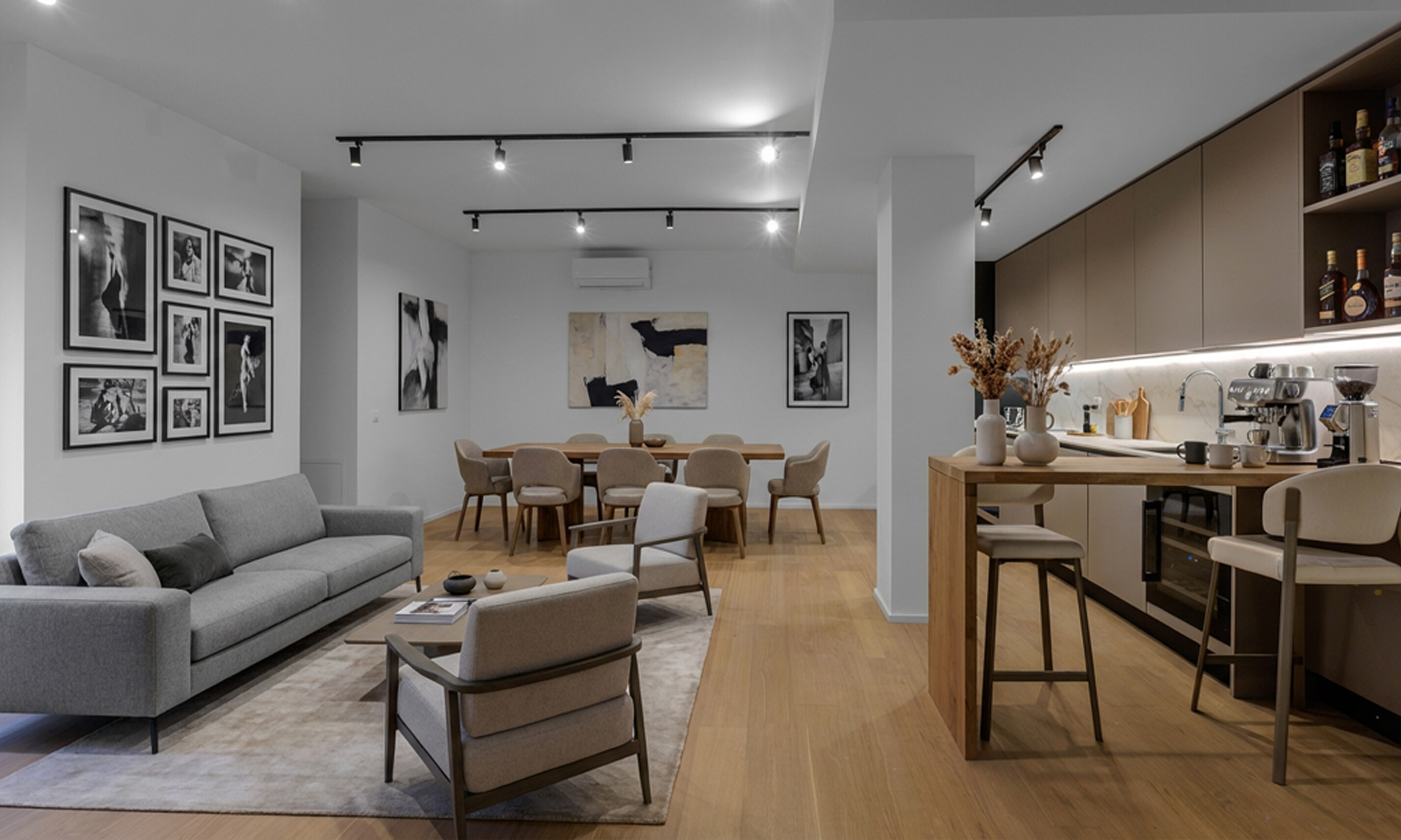 La zona giorno di ca. 39 mq è caratterizzata da un'ampia sala living ideale per momenti di relax o per intrattenere gli ospiti, da una cucina open space moderna e funzionale, dotata di tutti gli elettrodomestici di ultima generazione servita da una comoda bagno ospiti e locale lavanderia.