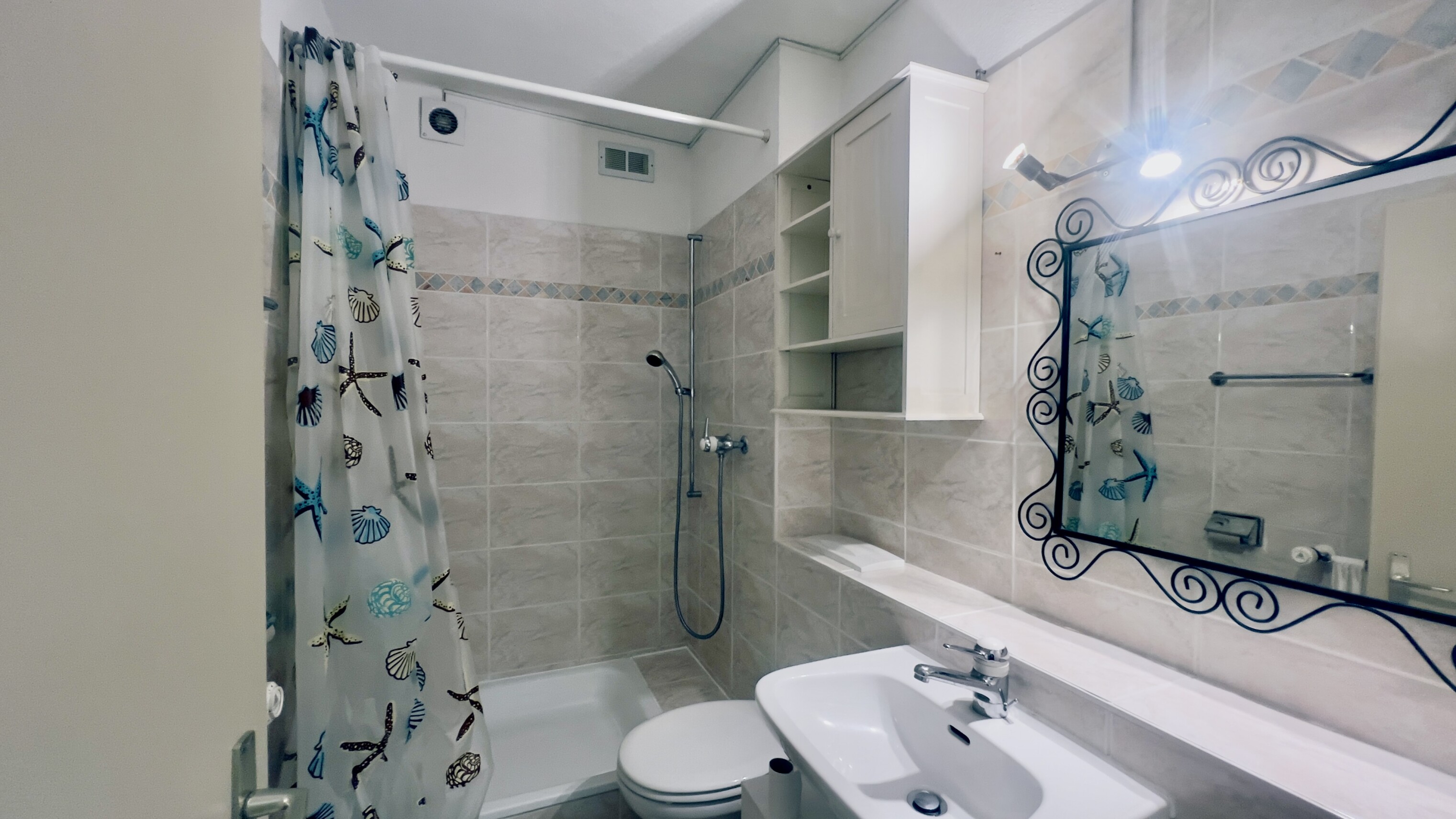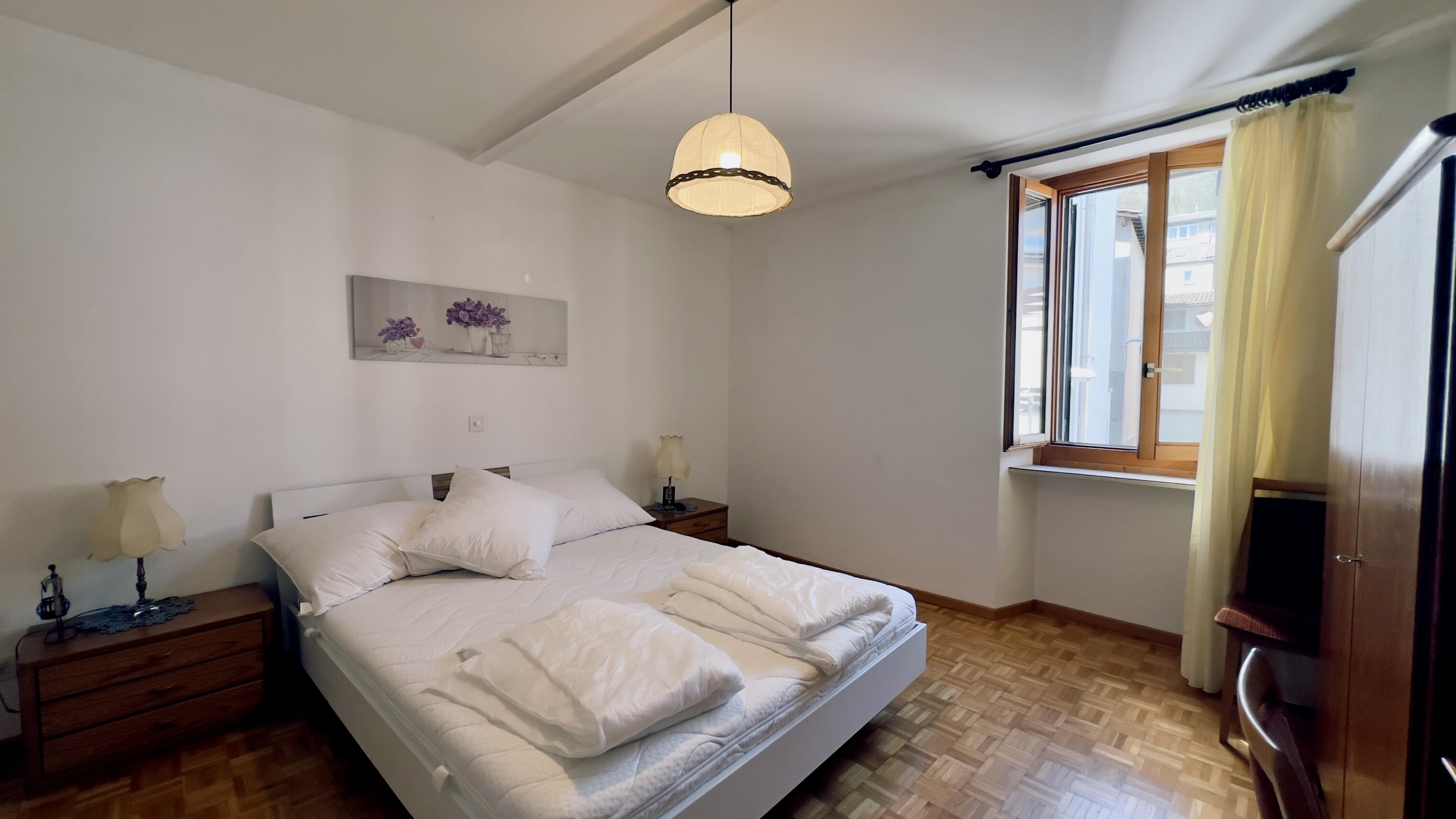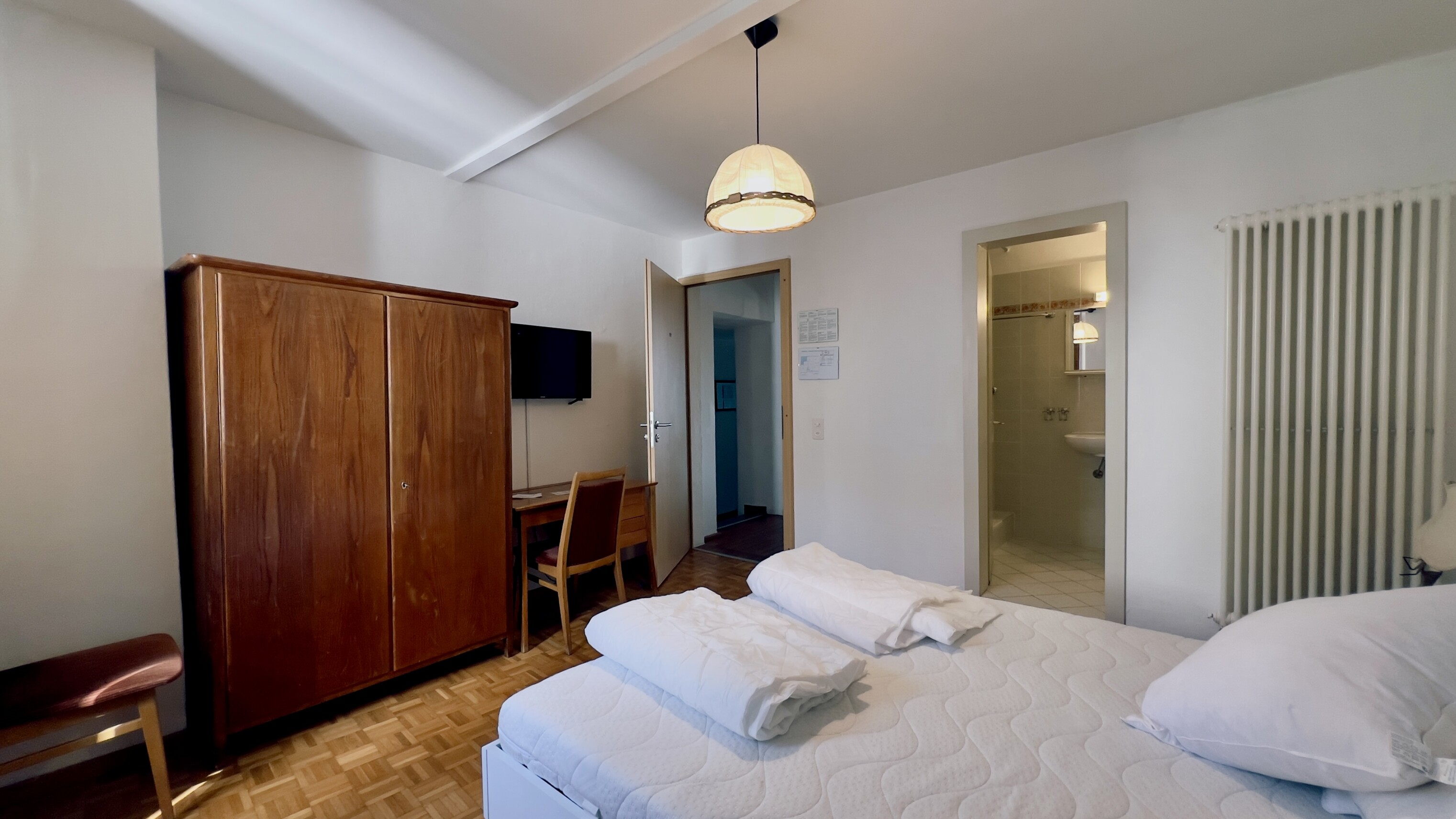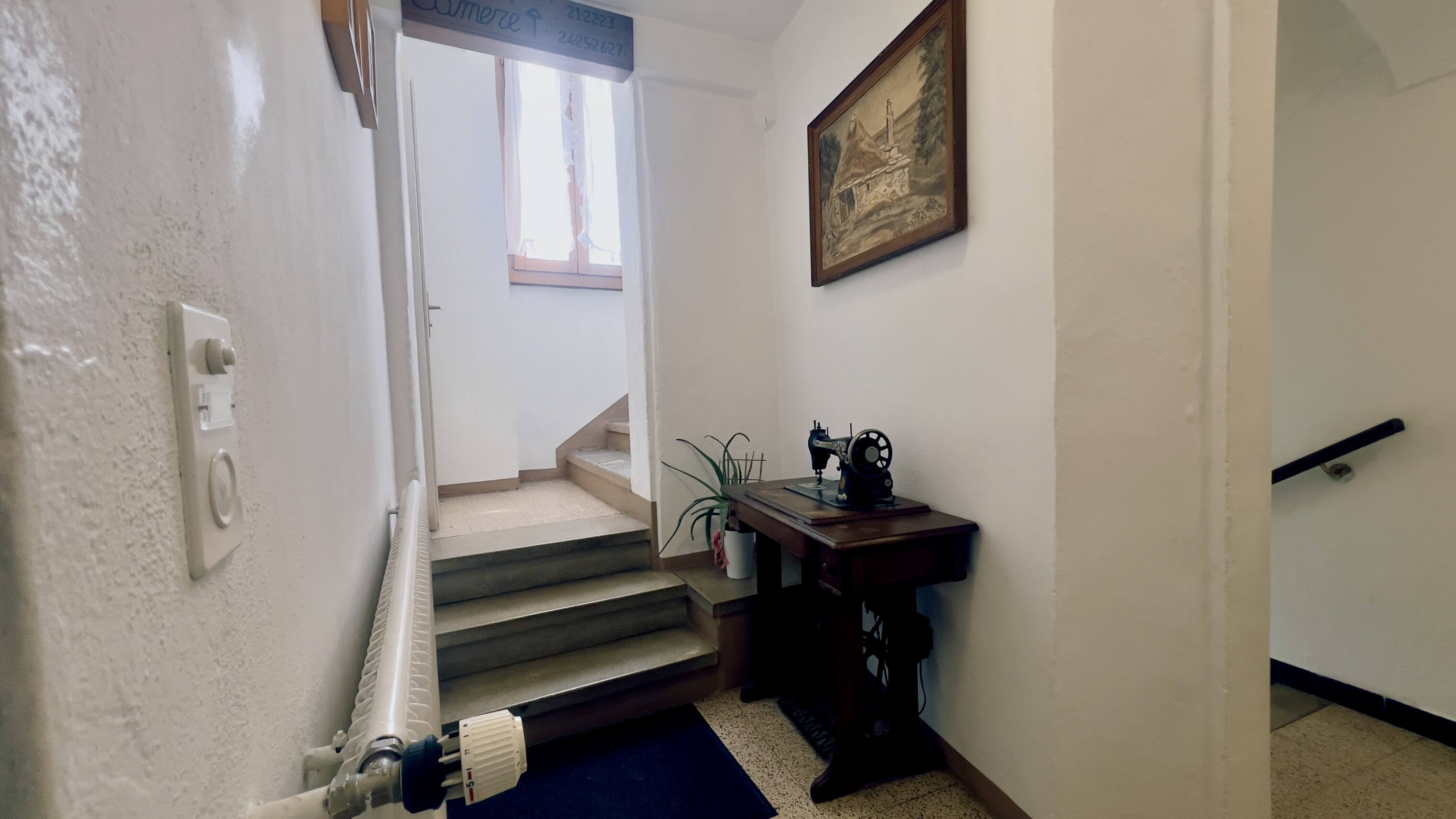 Al PRIMO PIANO si trovano un appartamento di 3.5 locali con cucina, soggiorno e due camere da letto - ideale per la residenza del gestore - e due camere doppie con servizi privati.
