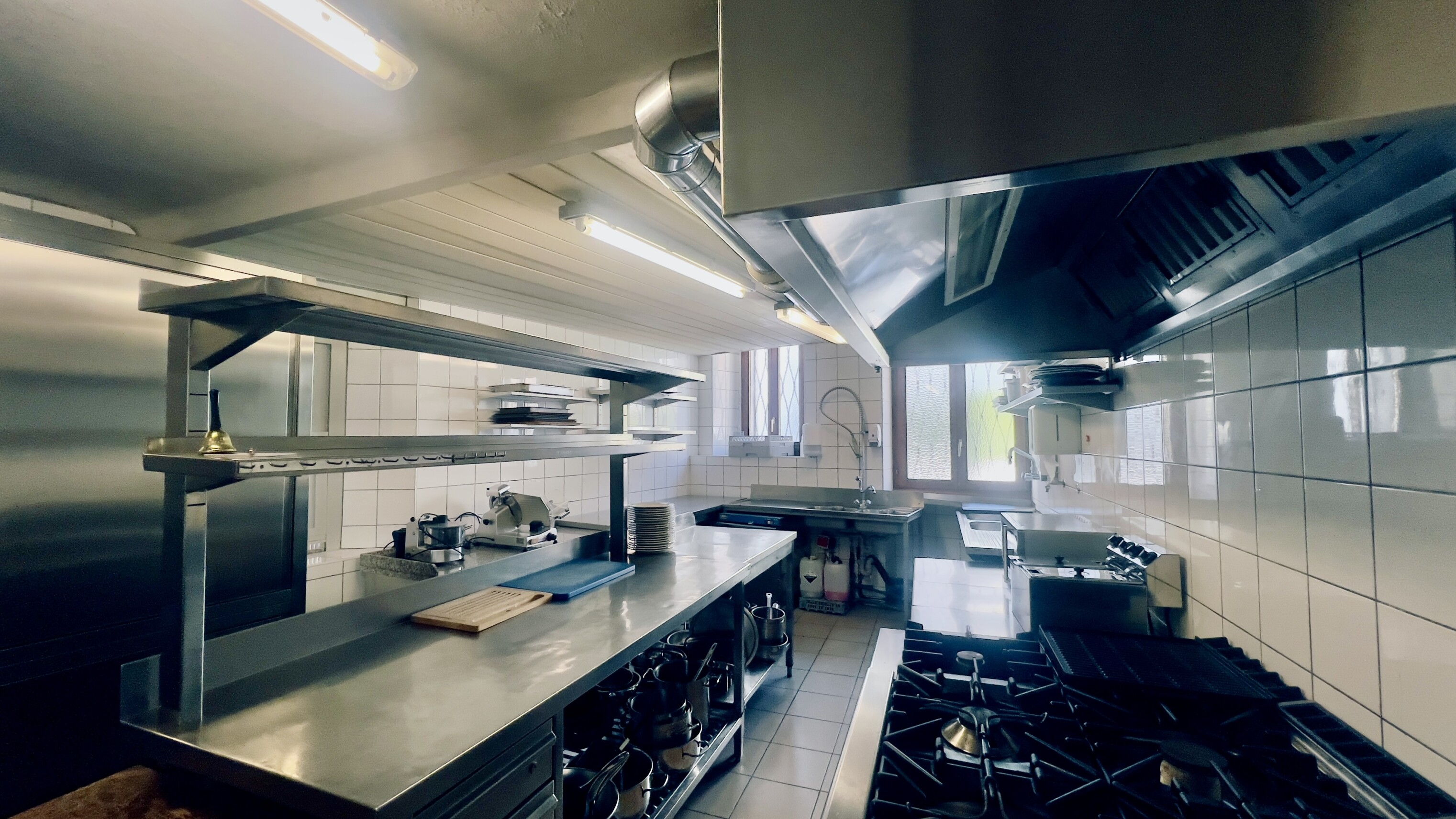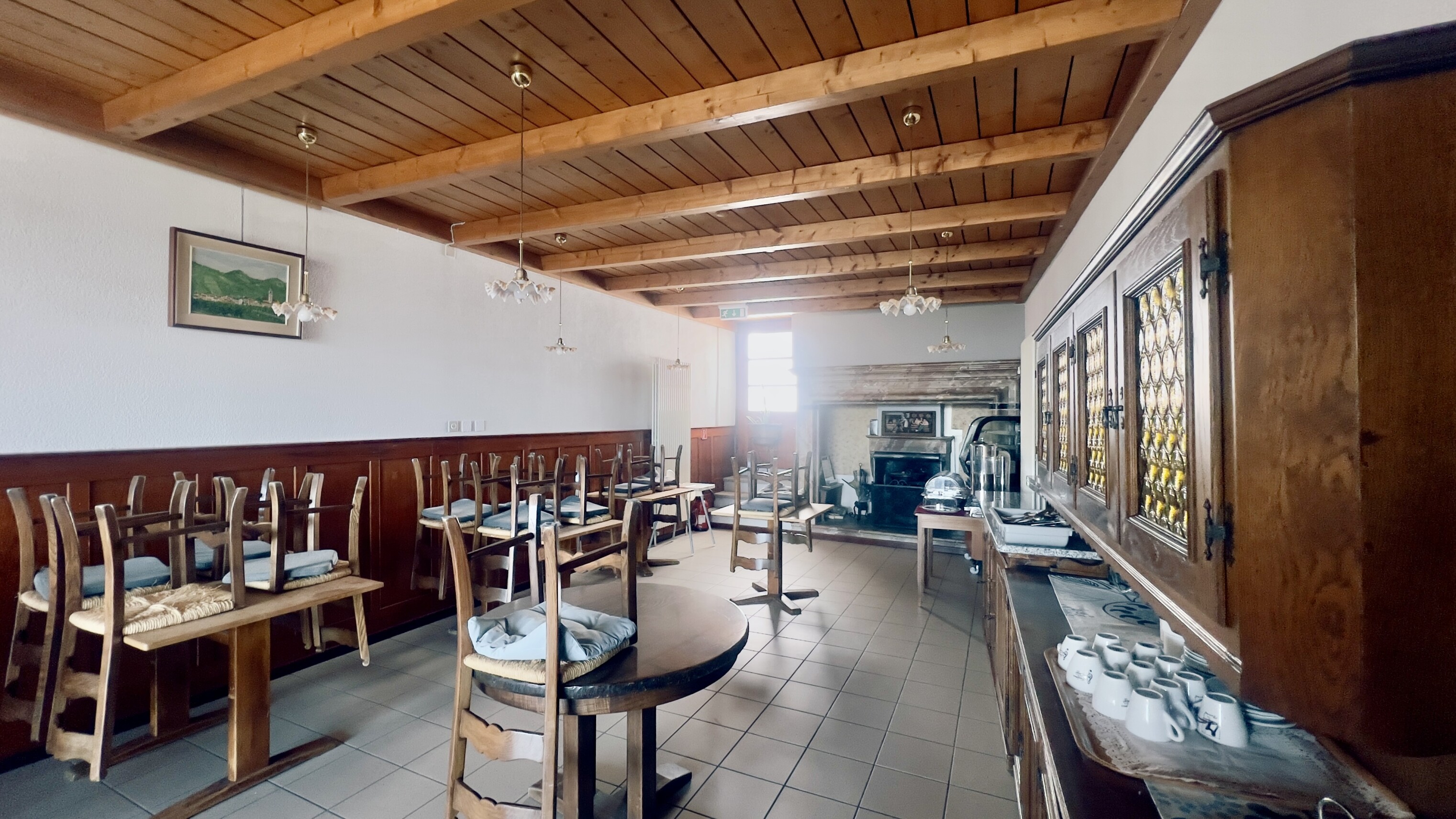 Al PIANO TERRA il ristorante si articola in due sale interne per circa 80 coperti, un bancone bar e una cucina professionale completamente attrezzata. La terrazza panoramica, affacciata sul paesaggio collinare del Malcantone, offre oltre 20 posti a sedere aggiuntivi - un valore aggiunto nei mesi estivi.