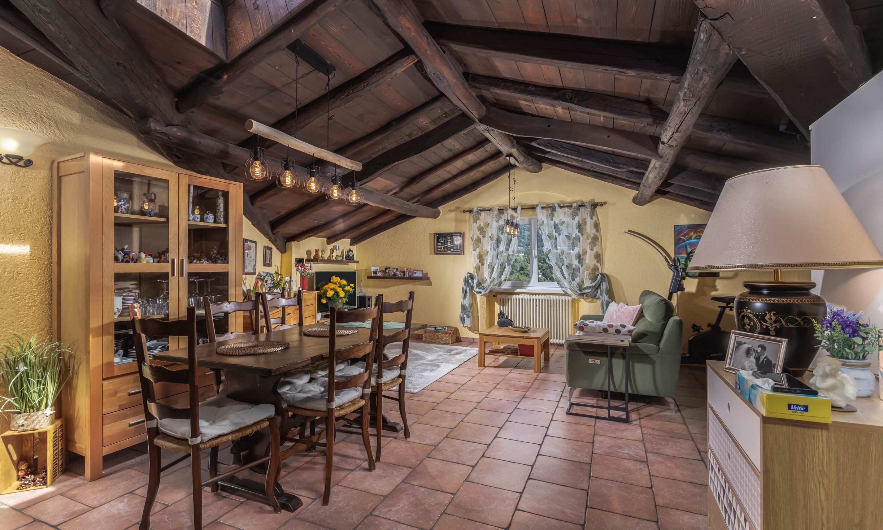 A soli 10 minuti dal cuore pulsante di Lugano, immerso nel verde e nella quiete di un contesto dal fascino autentico, proponiamo in vendita un appartamento attico mansardato di charme composto da 3 locali per ca. 95 mq calpestabili, ideale per una coppia o una piccola famiglia che desidera vivere circondata dalla natura senza rinunciare alla comodità dei servizi. L'appartamento, ristrutturato con cura tra il 1998 e il 2020, è impreziosito da un ampio piazzale con parchetto e giardino ad uso comune, perfetto per momenti di relax e convivialità.