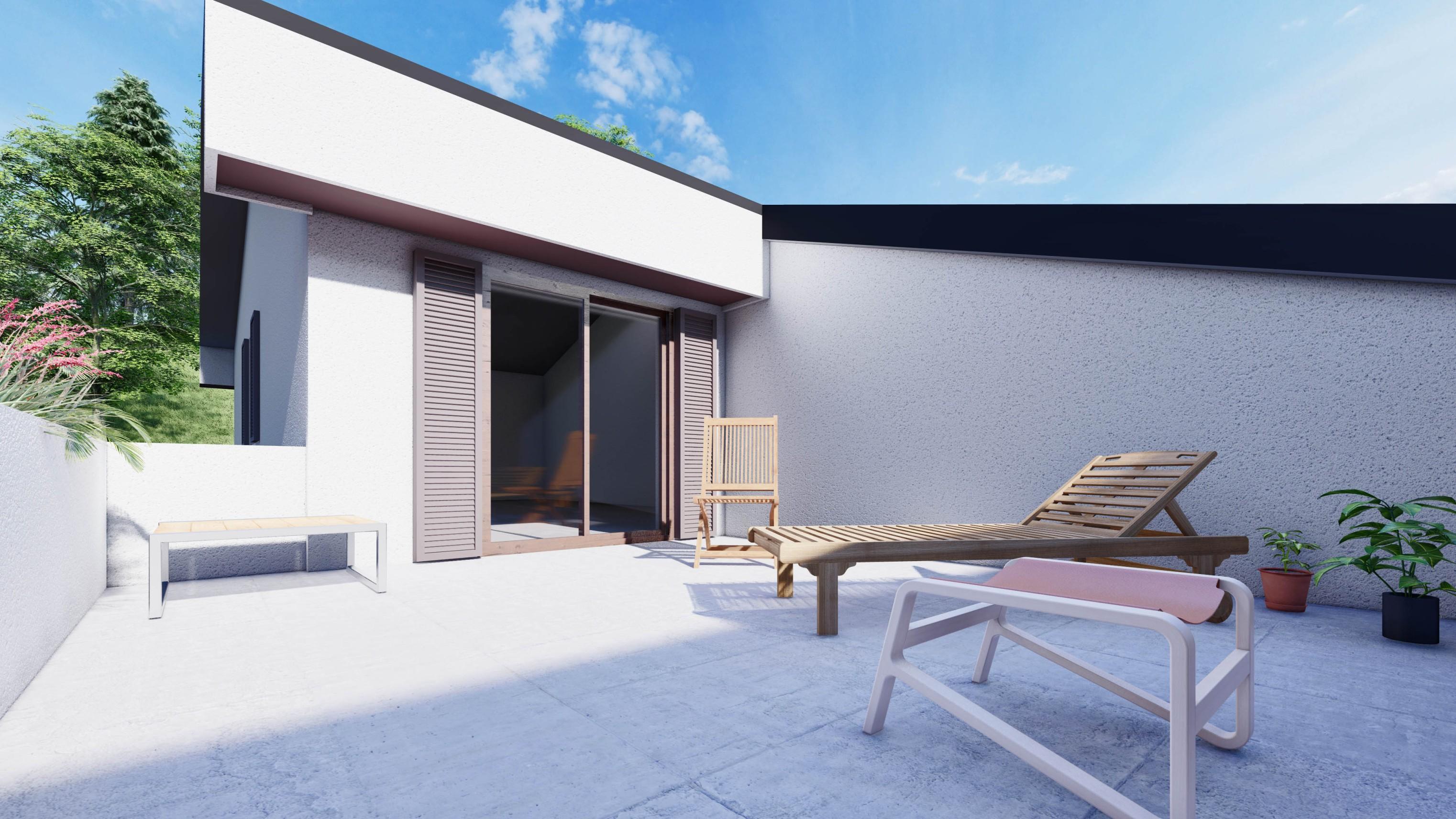 Al PRIMO PIANO si sviluppano una ampia camera di 32 mq anch'essa servita da un bagno con vasca, una cameretta/studio ed una terza spaziosa camera con uscita su una seconda terrazza di 20 mq.