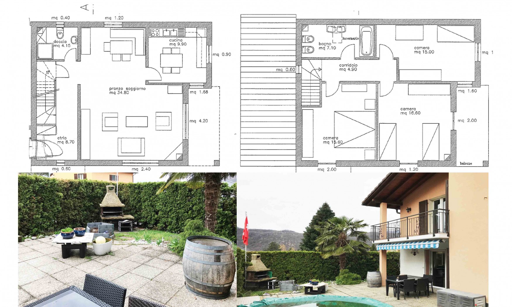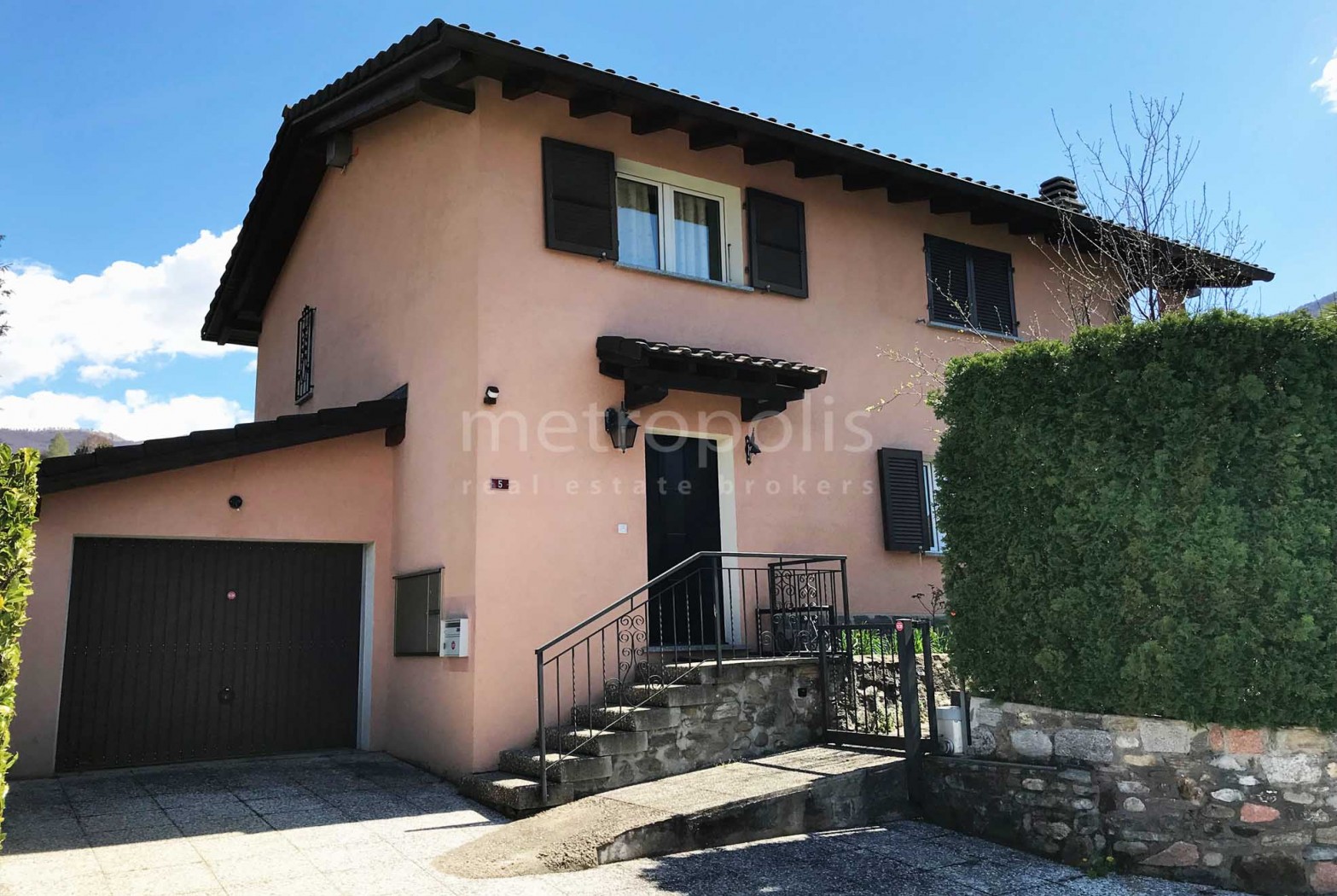 Casa di 5.5 locali disposta su tre livelli con ampio giardino di 250 mq e piscina esterna. Questa abitazione è stata realizzata nel 1994 su un terreno di circa 400 mq, ed internamente dispone di 190 mq ca. Nello specifico è composta da ingresso con atrio,ubicato al piano terra, con scala per accedere alla zona notte al livello superiore. La zona giorno al piano terra è composta da luminoso soggiorno con camino e accesso diretto al giardino, esposto a sud. Cucina semi-separata abitabile rinnovata di recente con elettrodomestici moderni, anch'essa con accesso al giardino con portico.